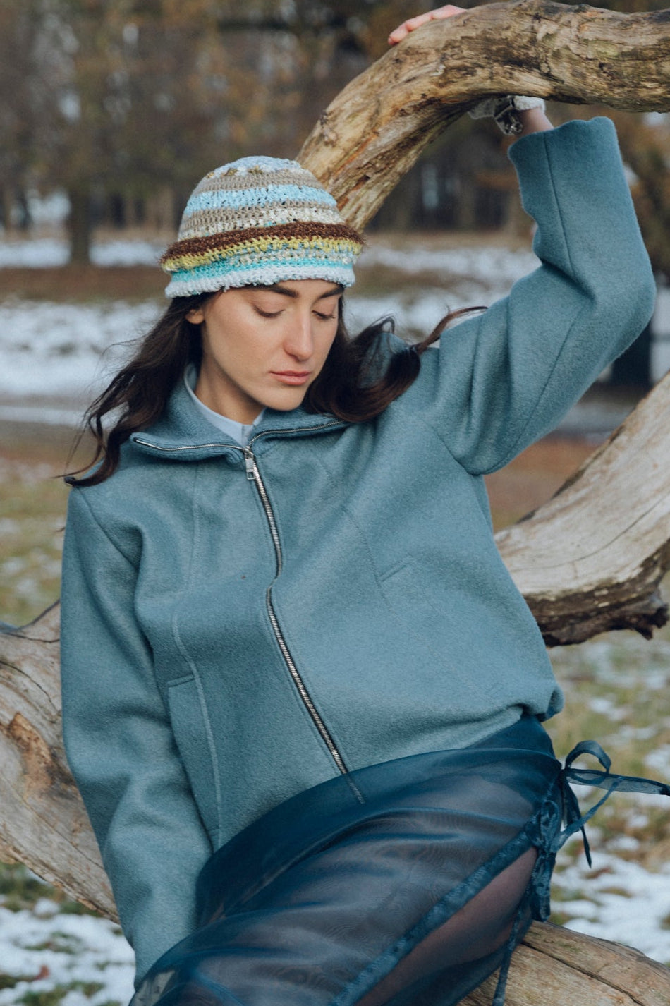 One-of-a-kind headpiece made by hand from a mix of cotton and yarn sourced in Venice. Defined by texture, weight, and restrained interplay of color. Constructed as a singular object.